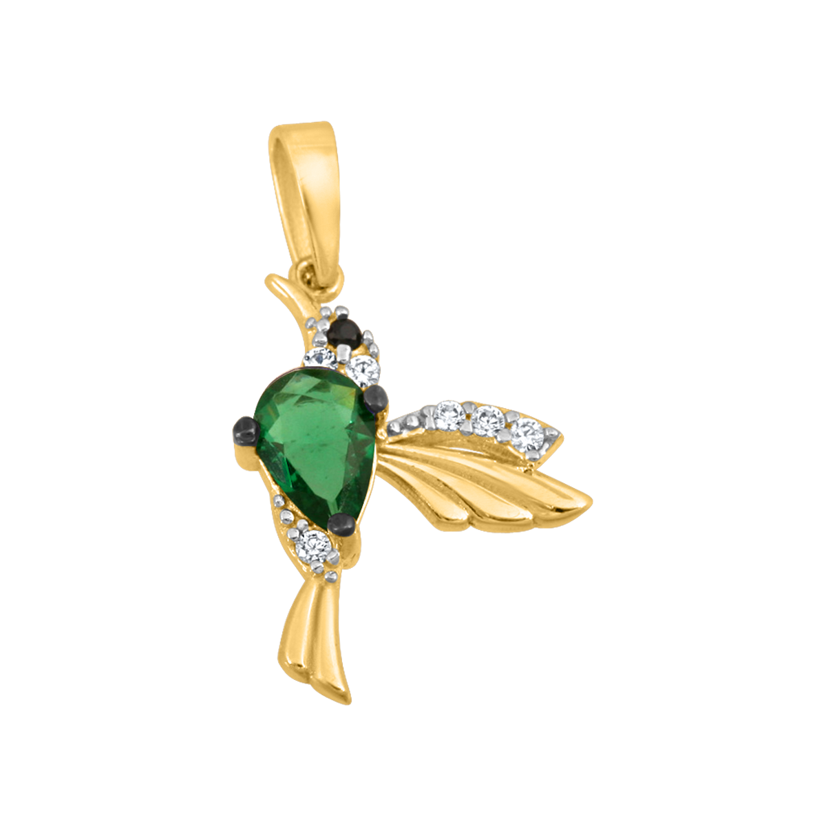 uwagi: Przywieszka koliber z kamieniem w kolorze szmaragdu i cyrkoniami.